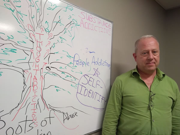 Although he never struggled with a chemical addiction, he has experienced his own battles with other addictions, he says, and he understands intimately the nature of having an incurable disease that affects the mind. His has been a lifelong ordeal, just as it is for those who seek recovery, and as a counselor who transitioned to the role of therapeutic assistant in Cornerstone’s Newcomers Program, he found his calling.